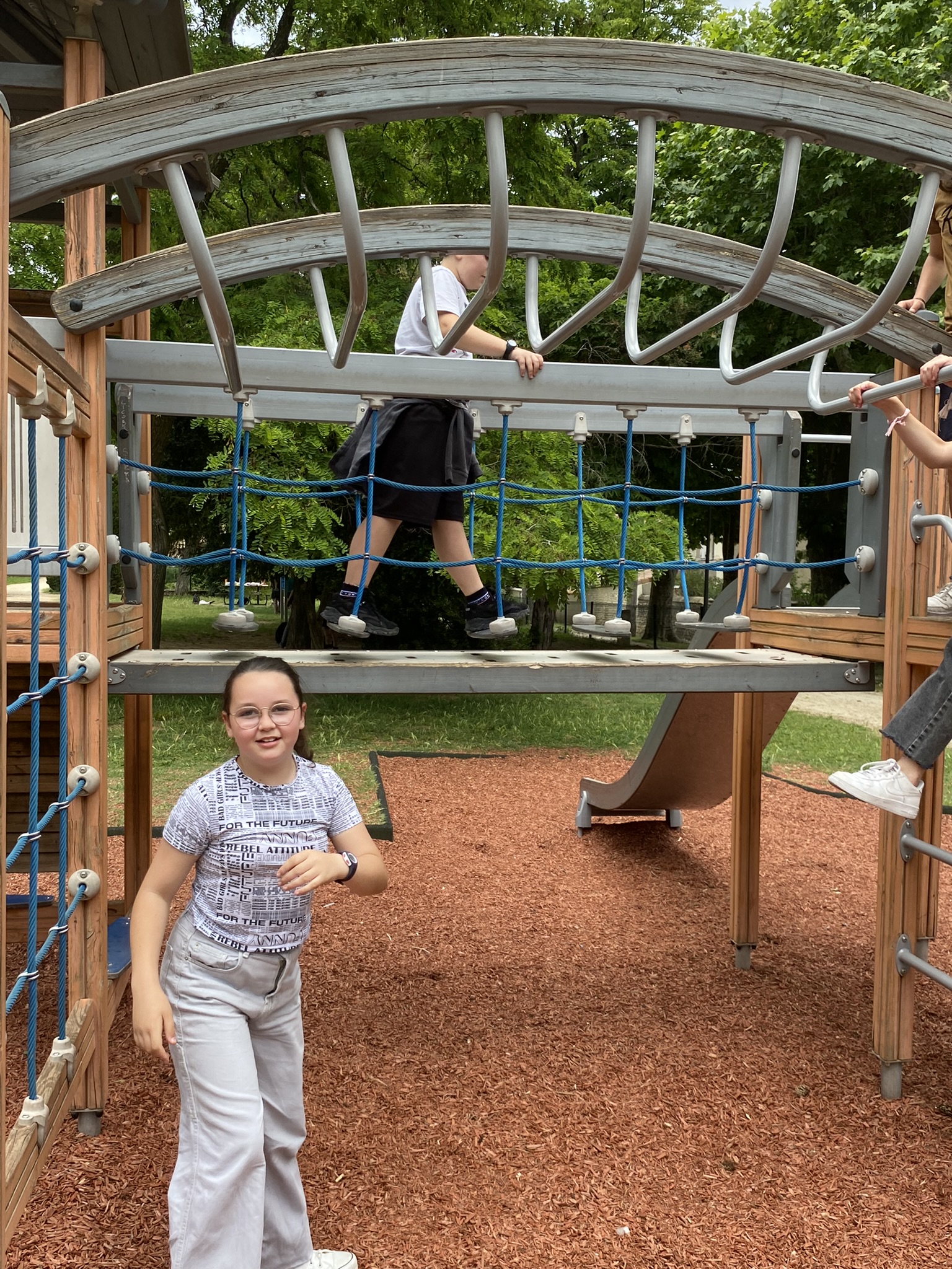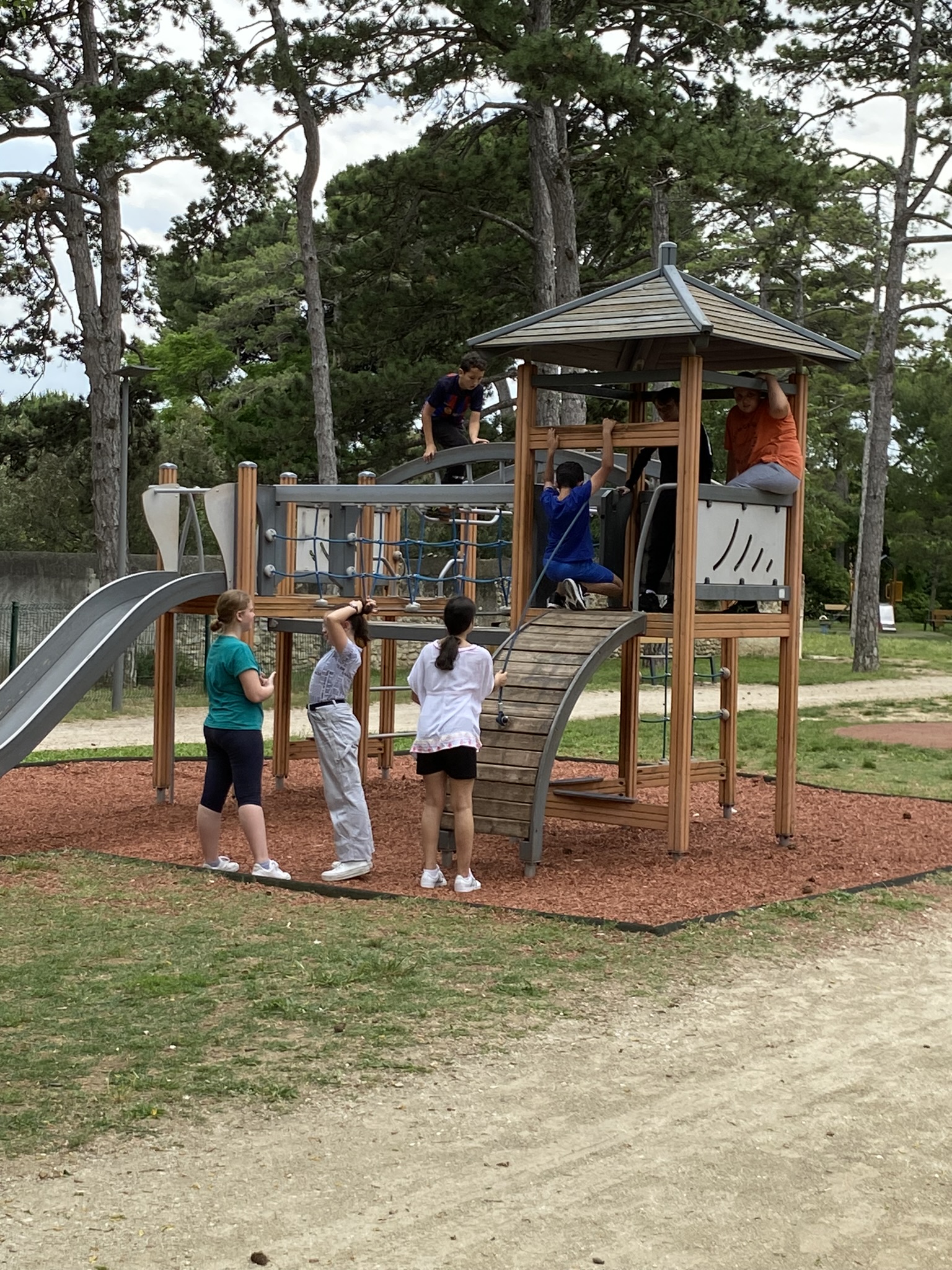 Vendredi 7 juin 2024, pour clore leur année sous le signe des langues, les élèves de 6B sont allés faire des jeux (en anglais comme "What time is it, Mr Wolf?") et se réjouir ensemble de la fin d'année qui arrive au parc Pied Vaurias.