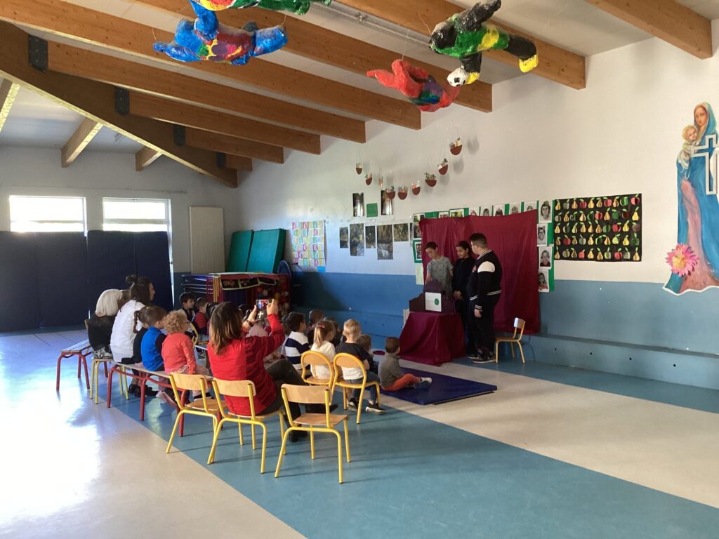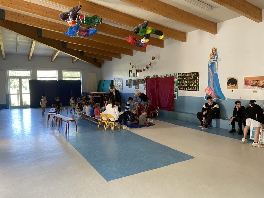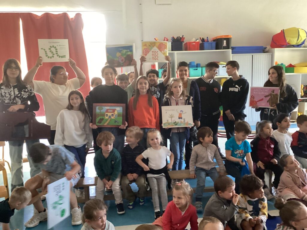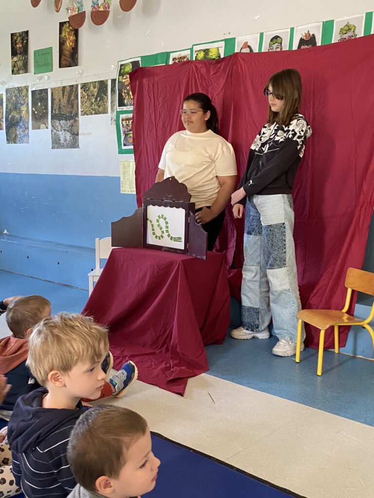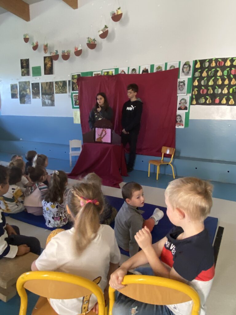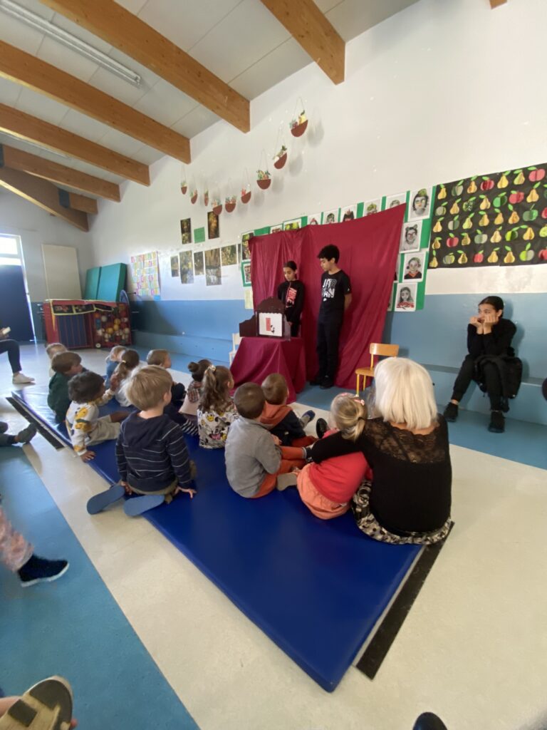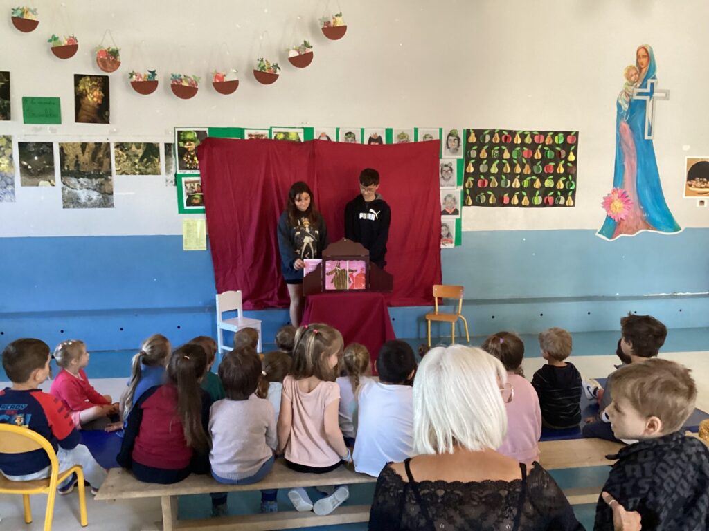 En cours de français, les 6ème C du collège Saint Jean Le Baptiste ont appris à lire avec intonation des kamishibaïs (petits théâtre japonais). Une fois prêts, ils ont raconté ces histoires aux enfants de l’école maternelle avec brio !!!