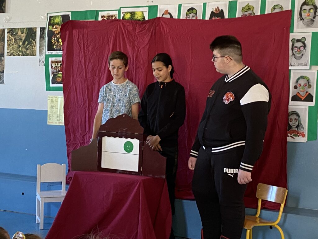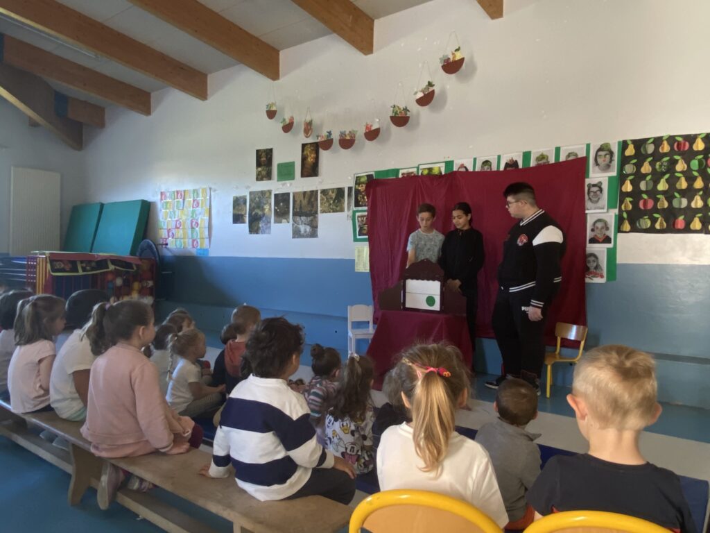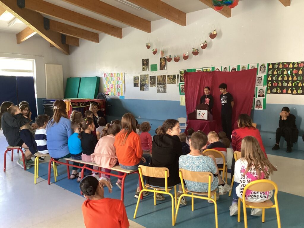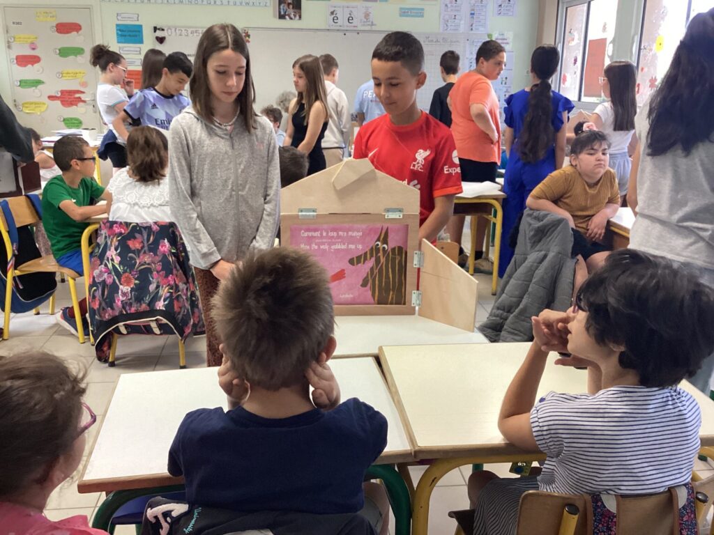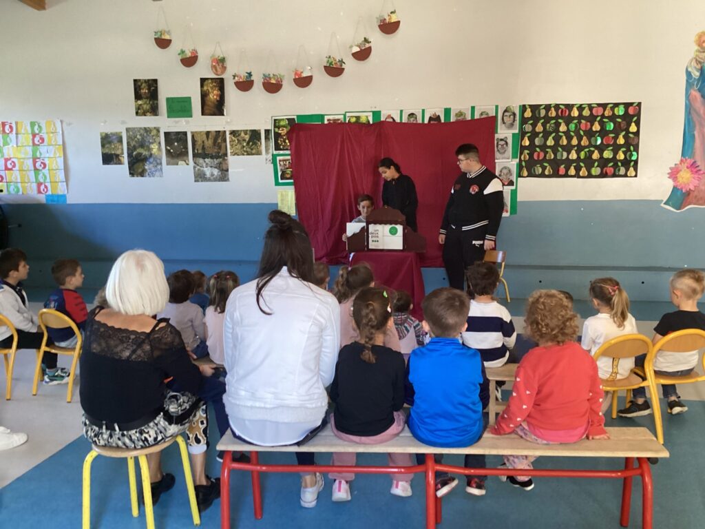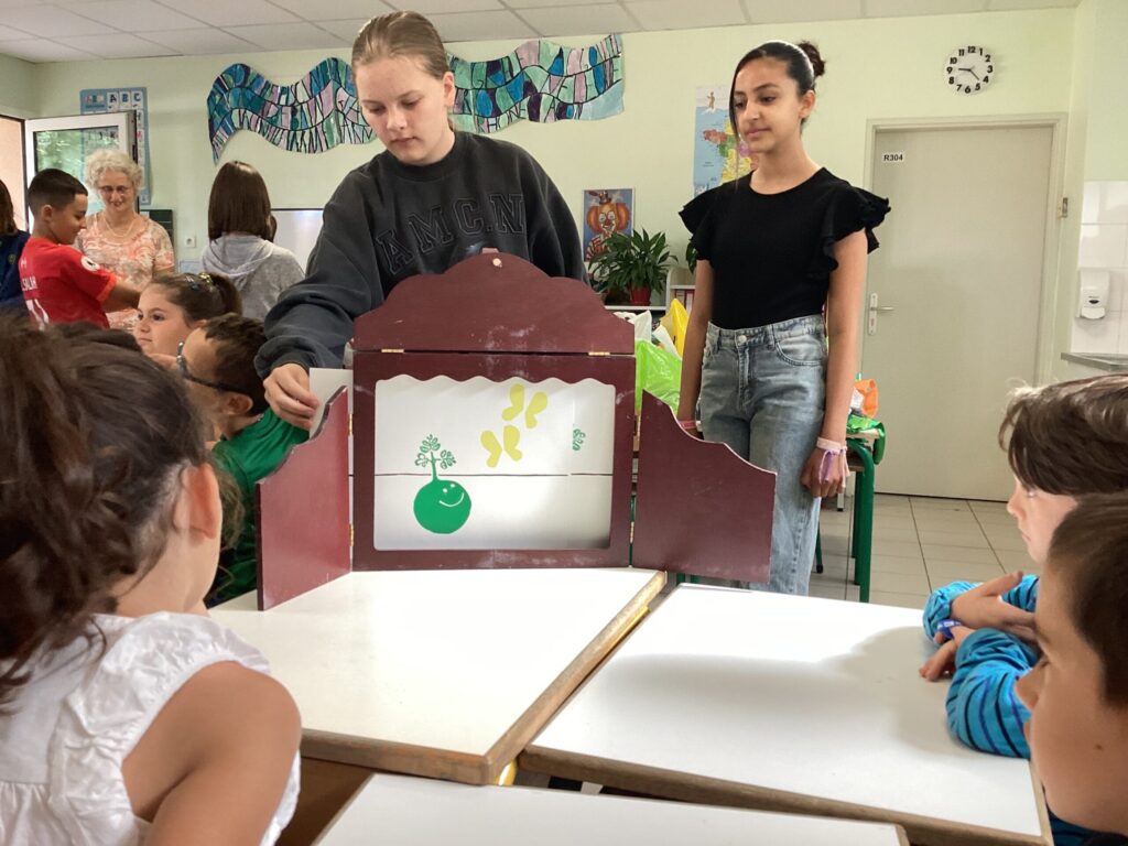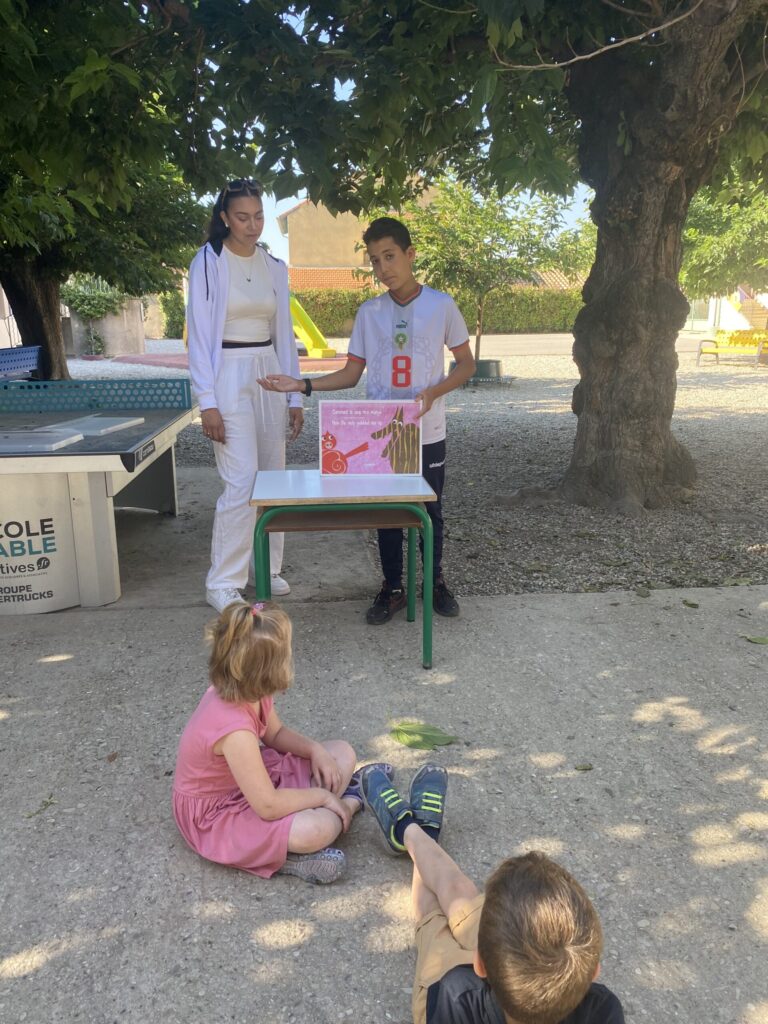 Ce mardi 18 juin 2024, ils ont donc livré un véritable spectacle aux élèves de CE1 de Saint Jean le Baptiste. Ils ont même commencé à leur apprendre les techniques du kamishibaï en leur proposant de lire à leur tour.