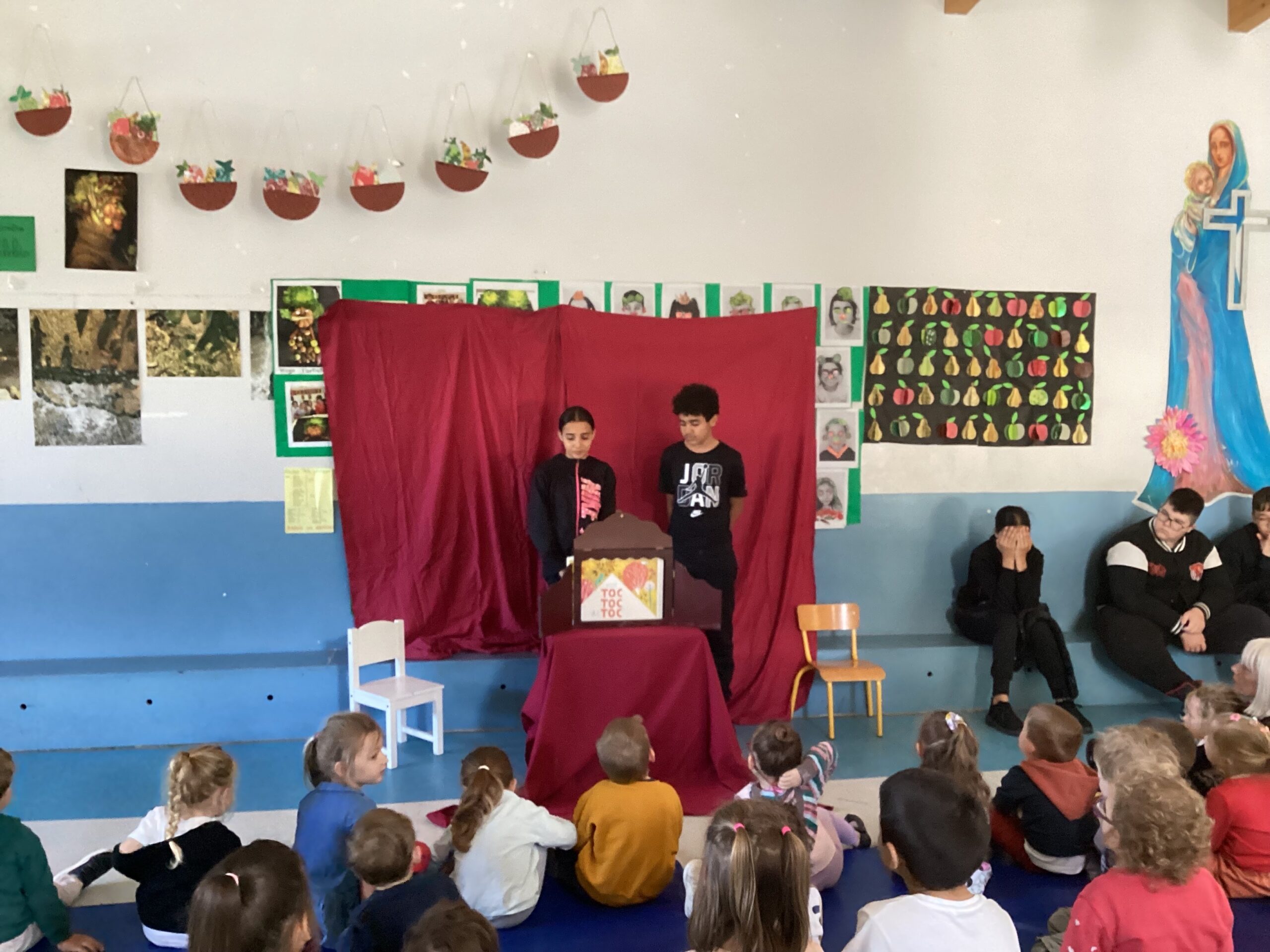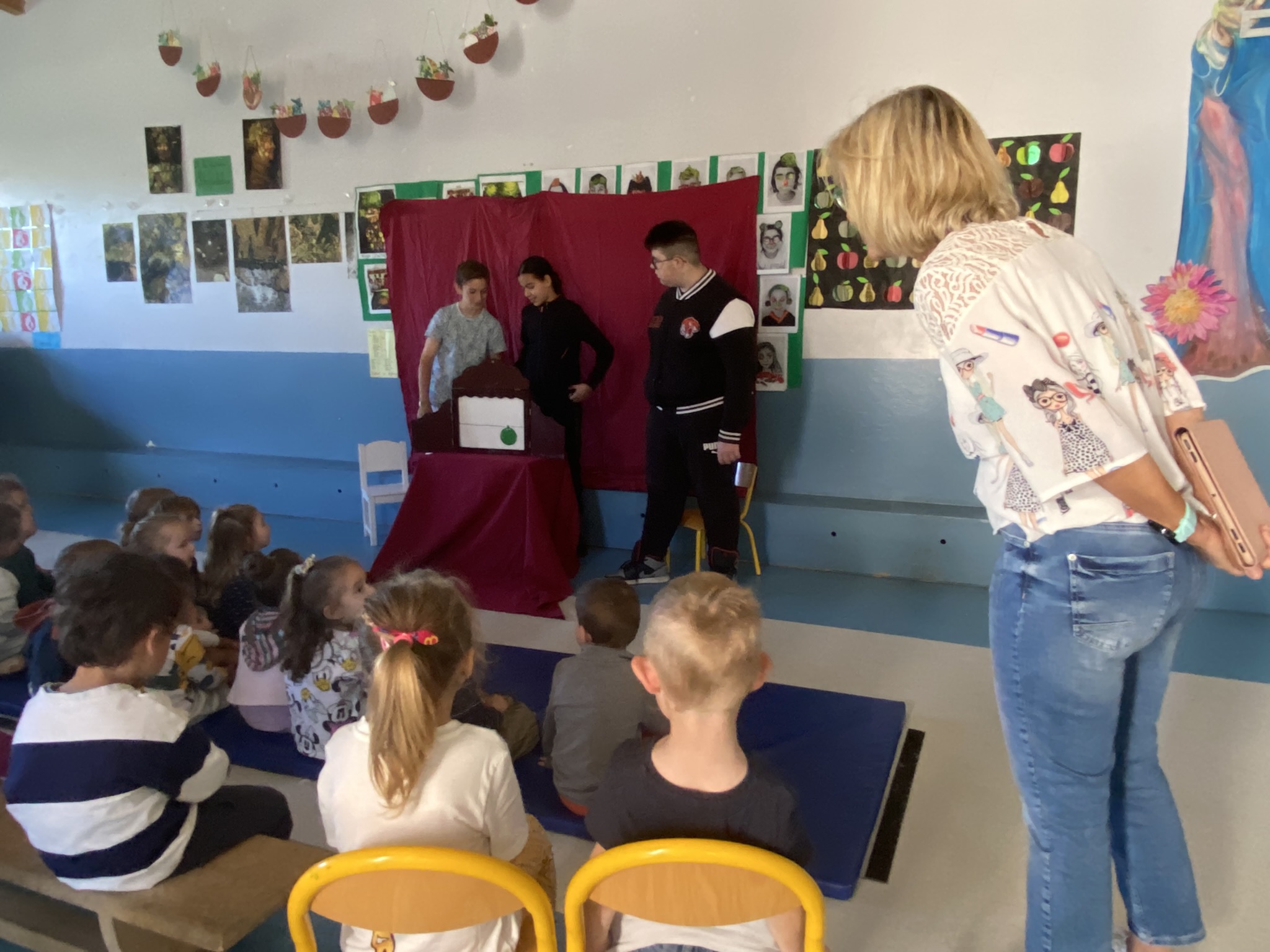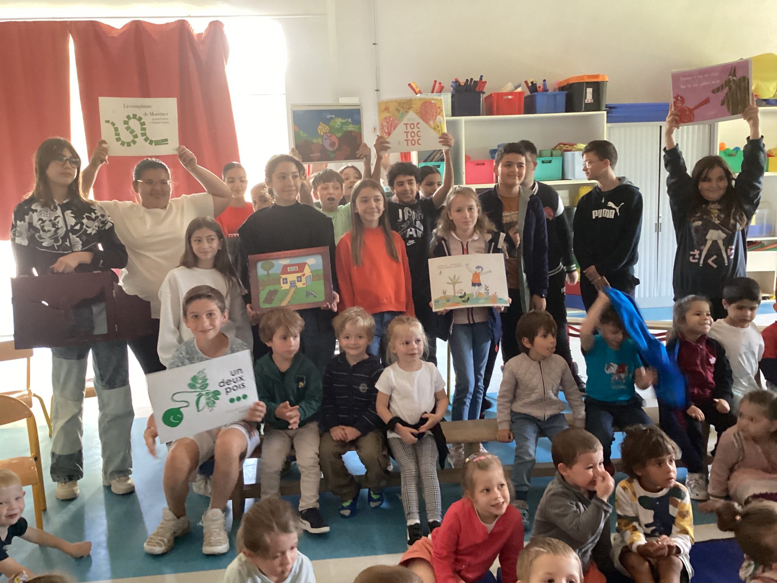 En cours de français, les 6ème C du collège Saint Jean Le Baptiste ont appris à lire avec intonation des kamishibaïs (petits théâtre japonais). Une fois prêts, ils ont raconté ces histoires aux enfants de l’école maternelle avec brio !!!