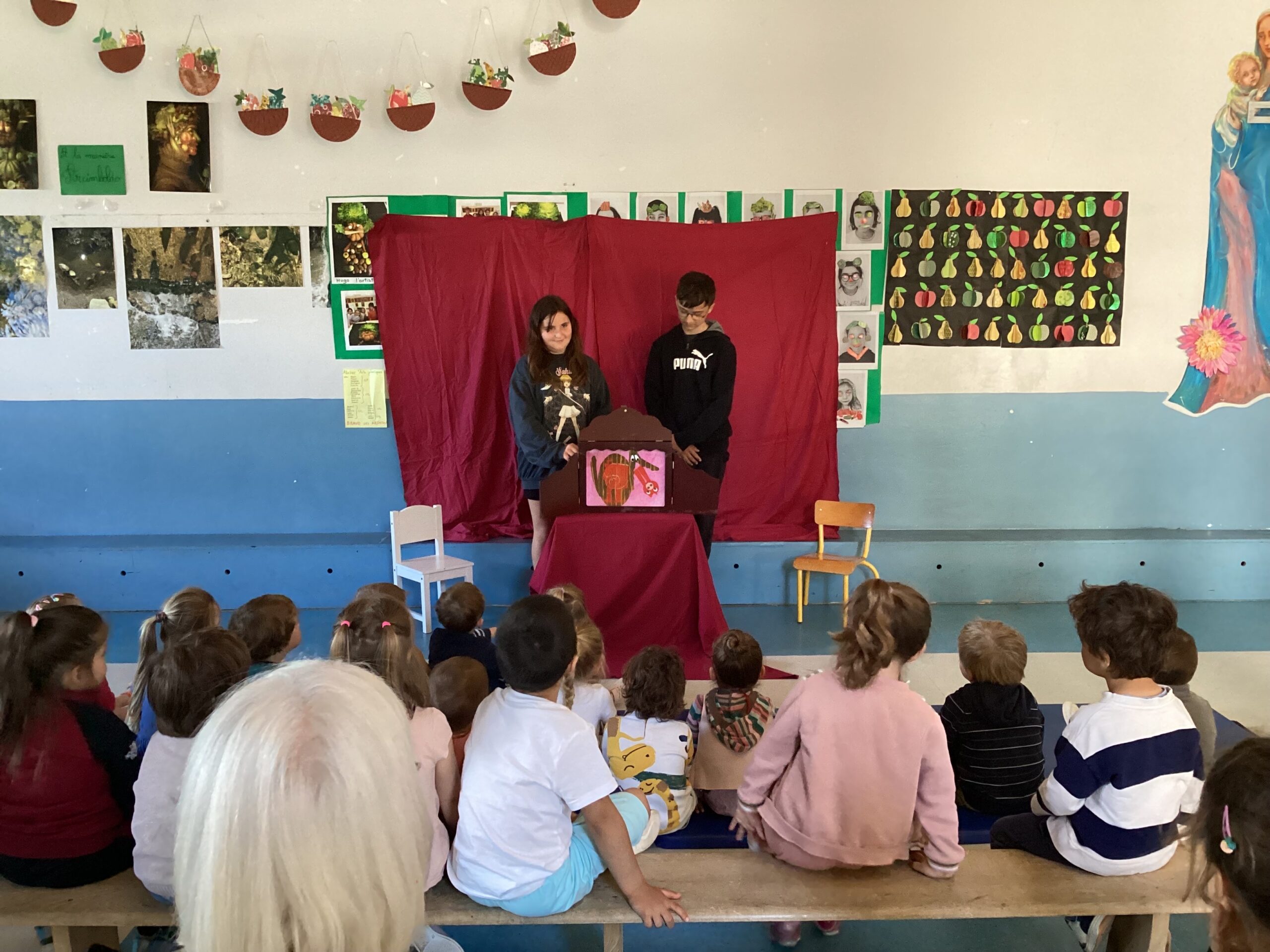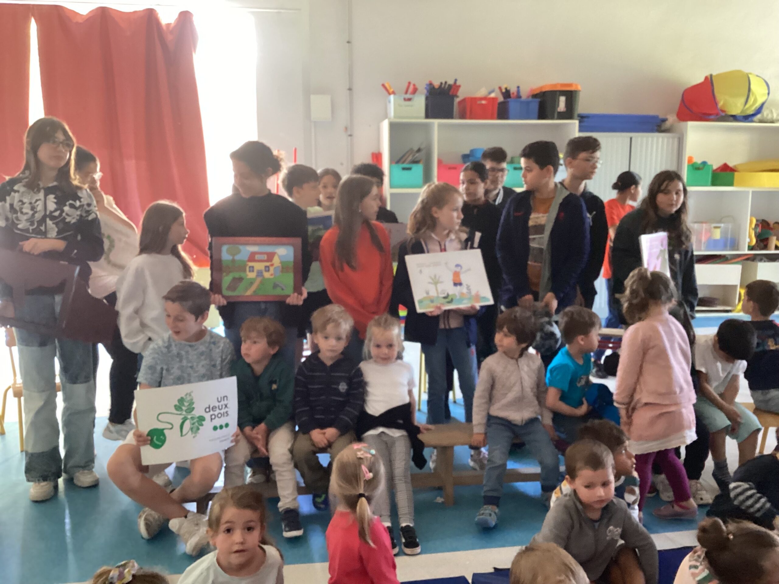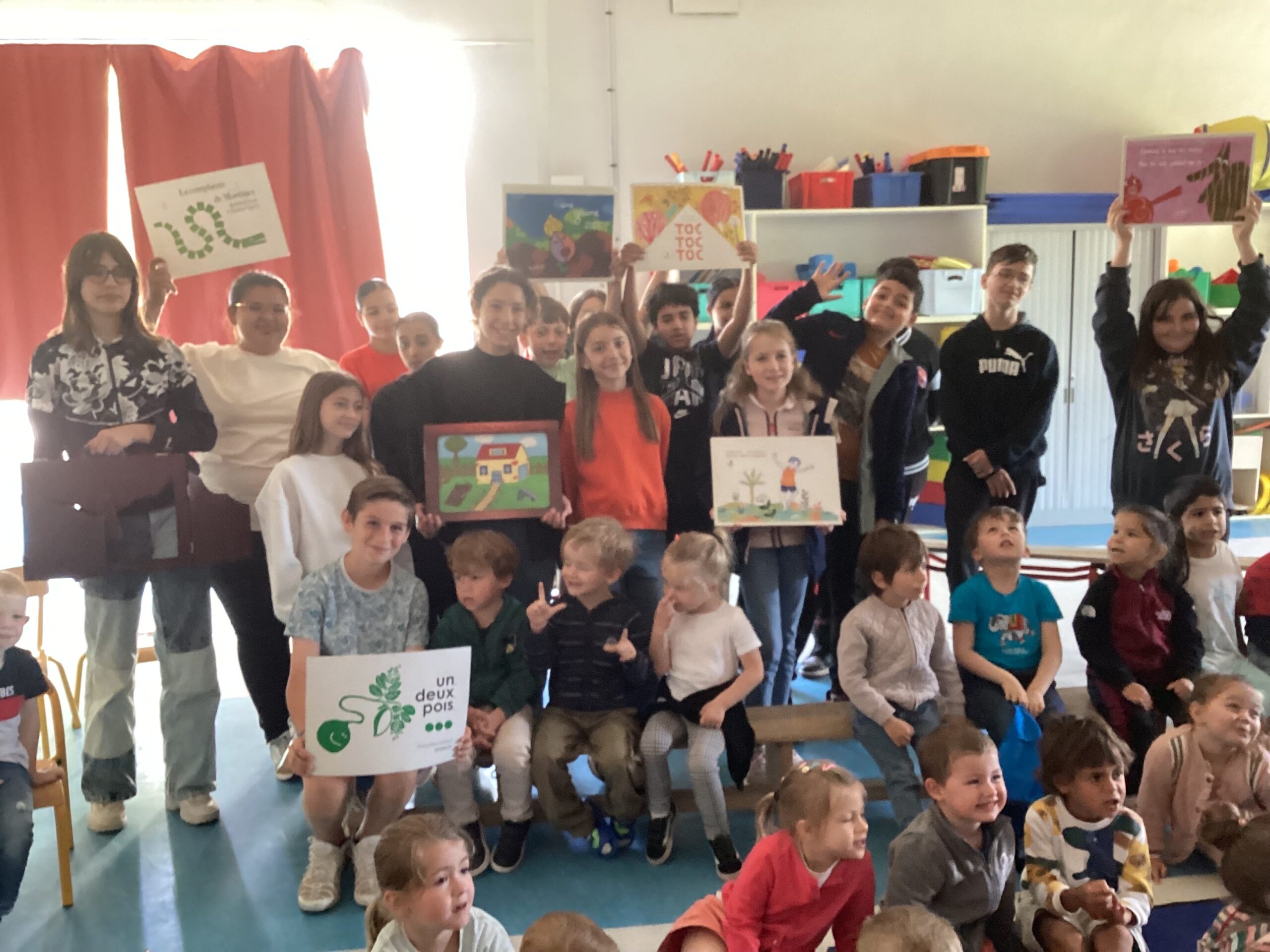 En cours de français, les 6ème C du collège Saint Jean Le Baptiste ont appris à lire avec intonation des kamishibaïs (petits théâtre japonais). Une fois prêts, ils ont raconté ces histoires aux enfants de l’école maternelle avec brio !!!