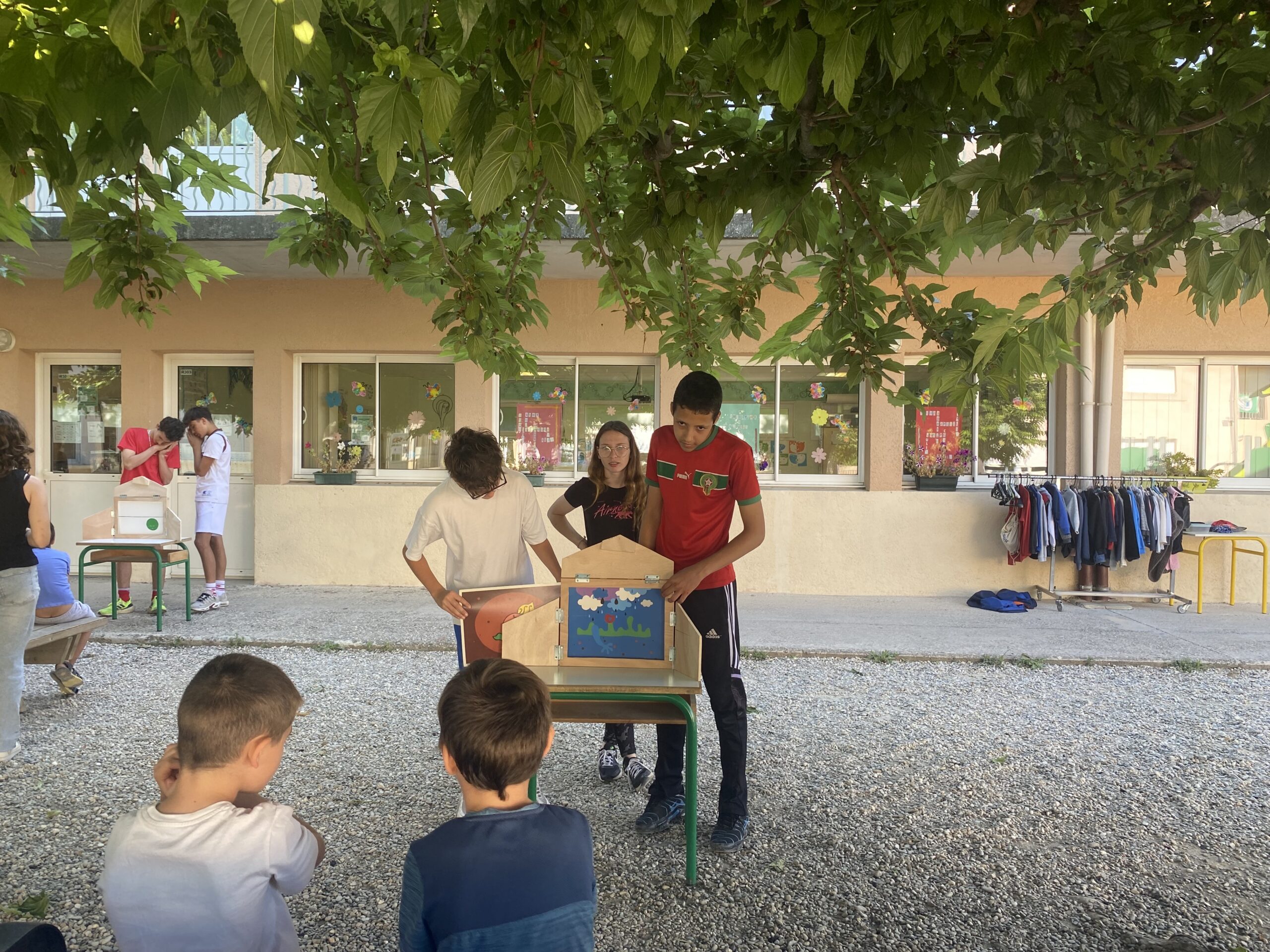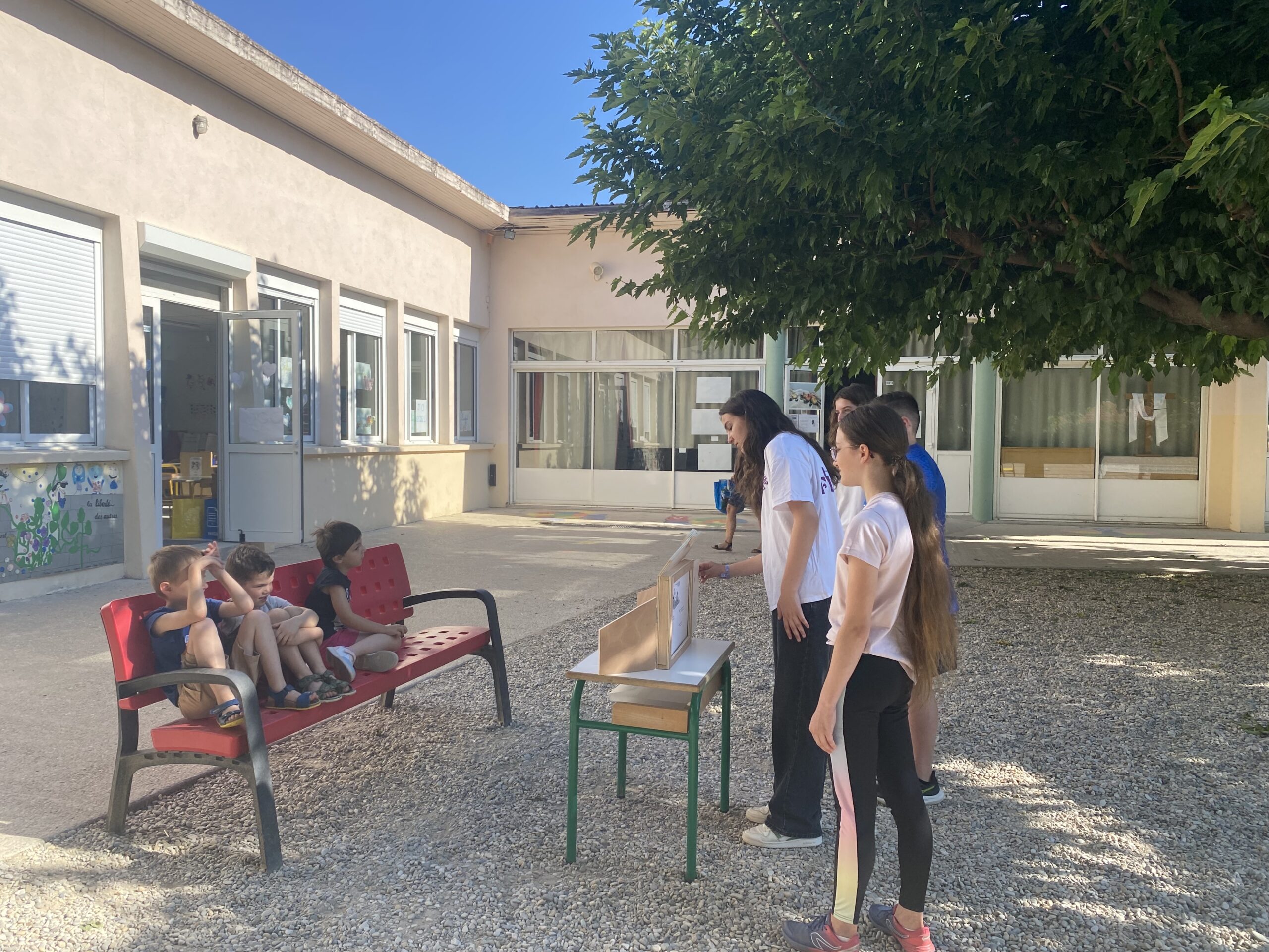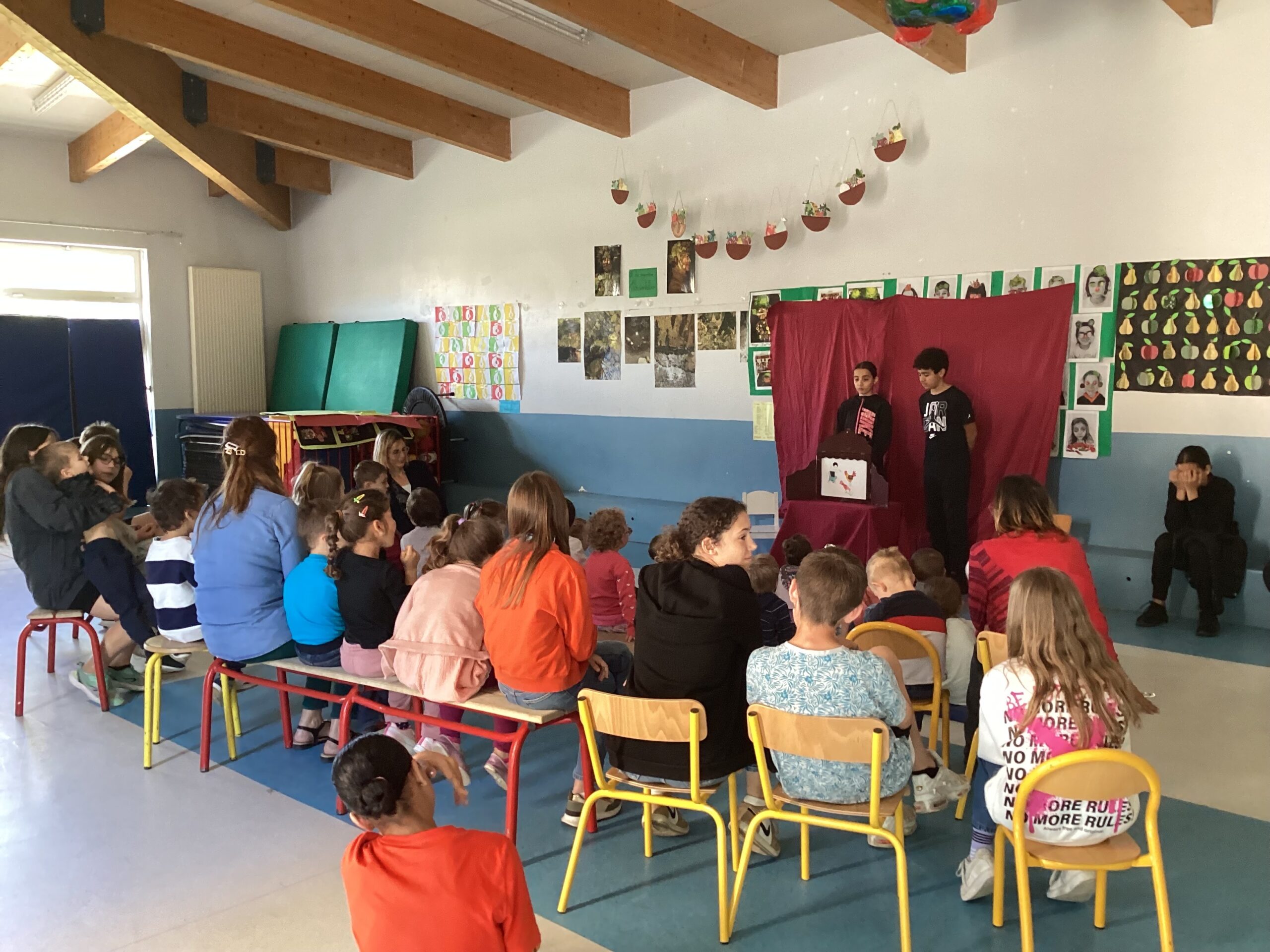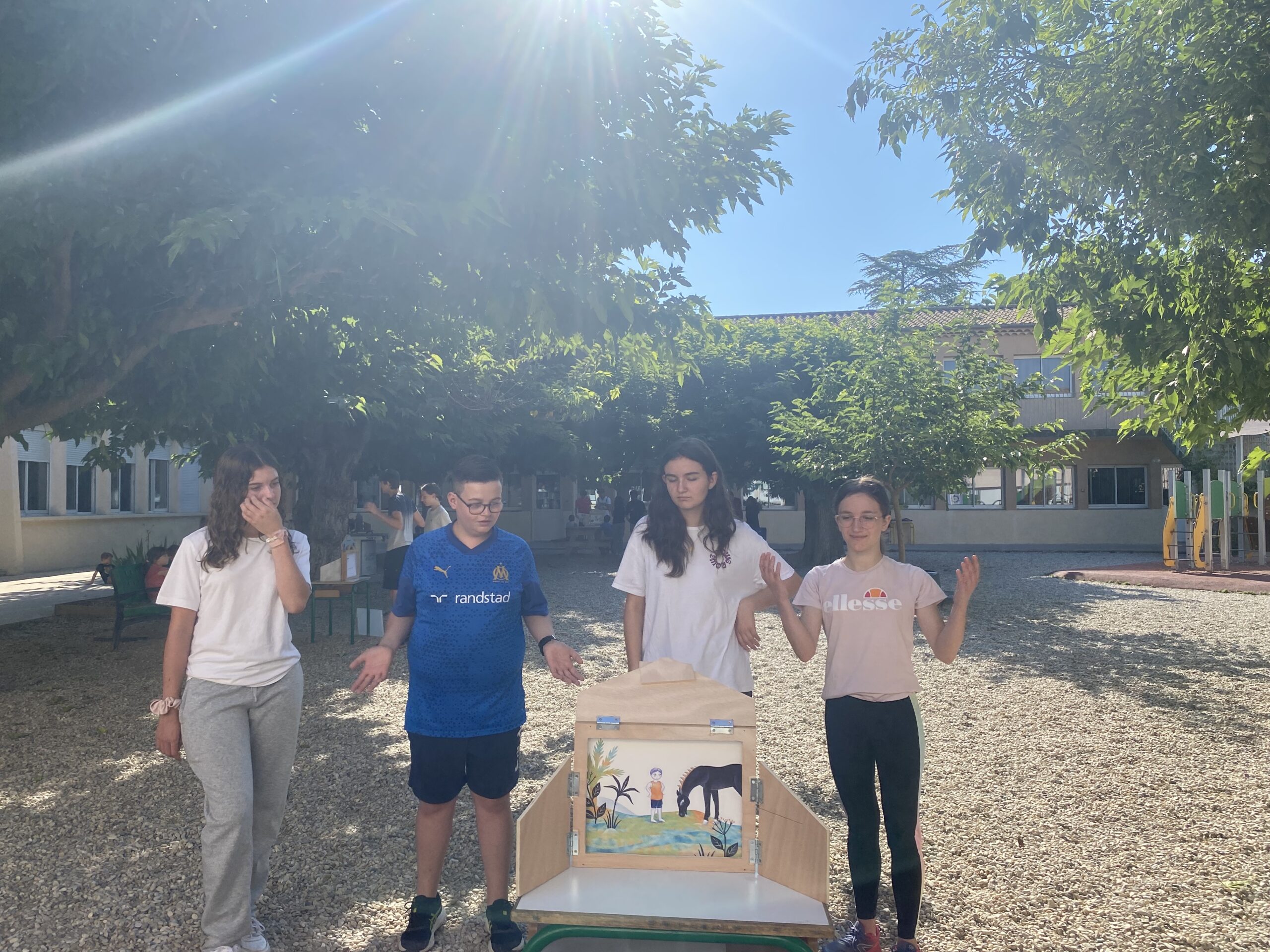 Ce jeudi 27/06, ce sont les élèves de 4emeA qui ont montré leurs talents de conteurs aux enfants de grande section de Saint Jean le Baptiste à Valreas. Les kamishibaïs ont encore réuni petits et grands !