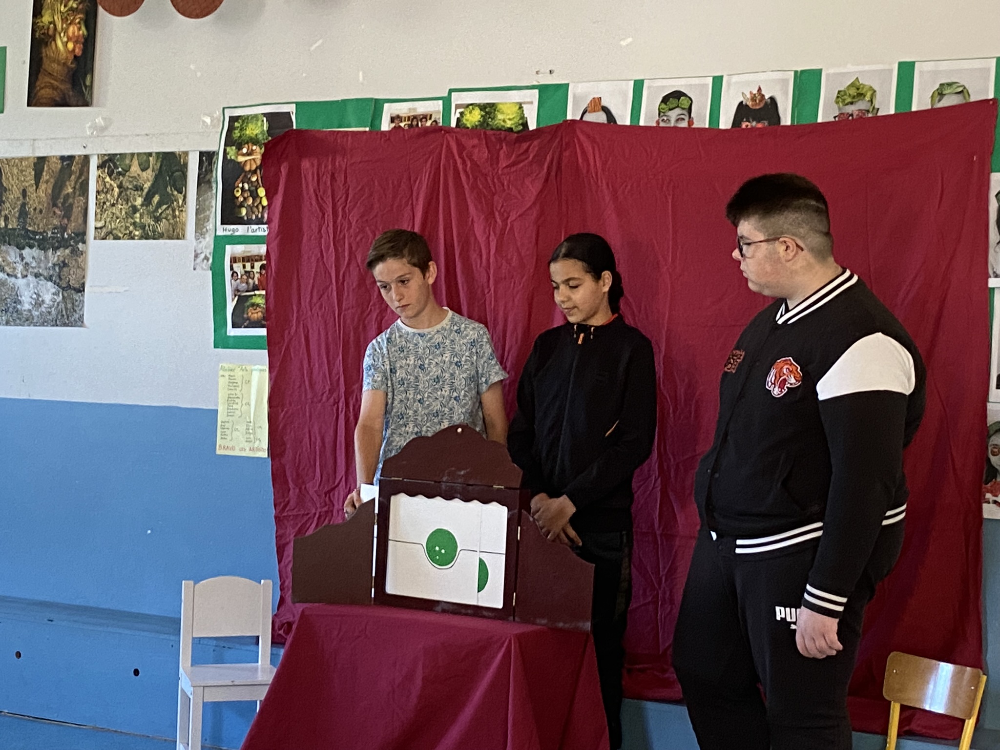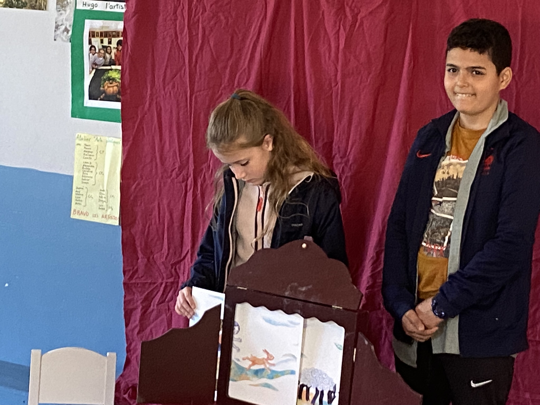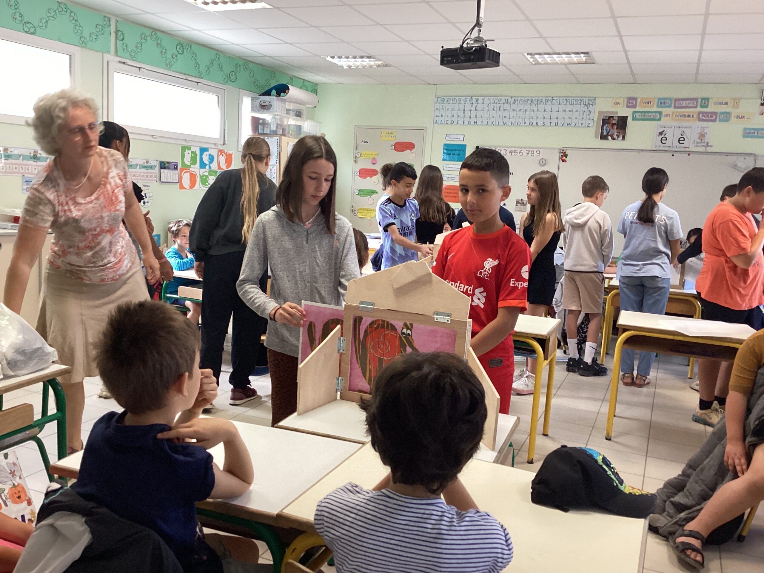 Ce mardi 18 juin 2024, ils ont donc livré un véritable spectacle aux élèves de CE1 de Saint Jean le Baptiste. Ils ont même commencé à leur apprendre les techniques du kamishibaï en leur proposant de lire à leur tour.
