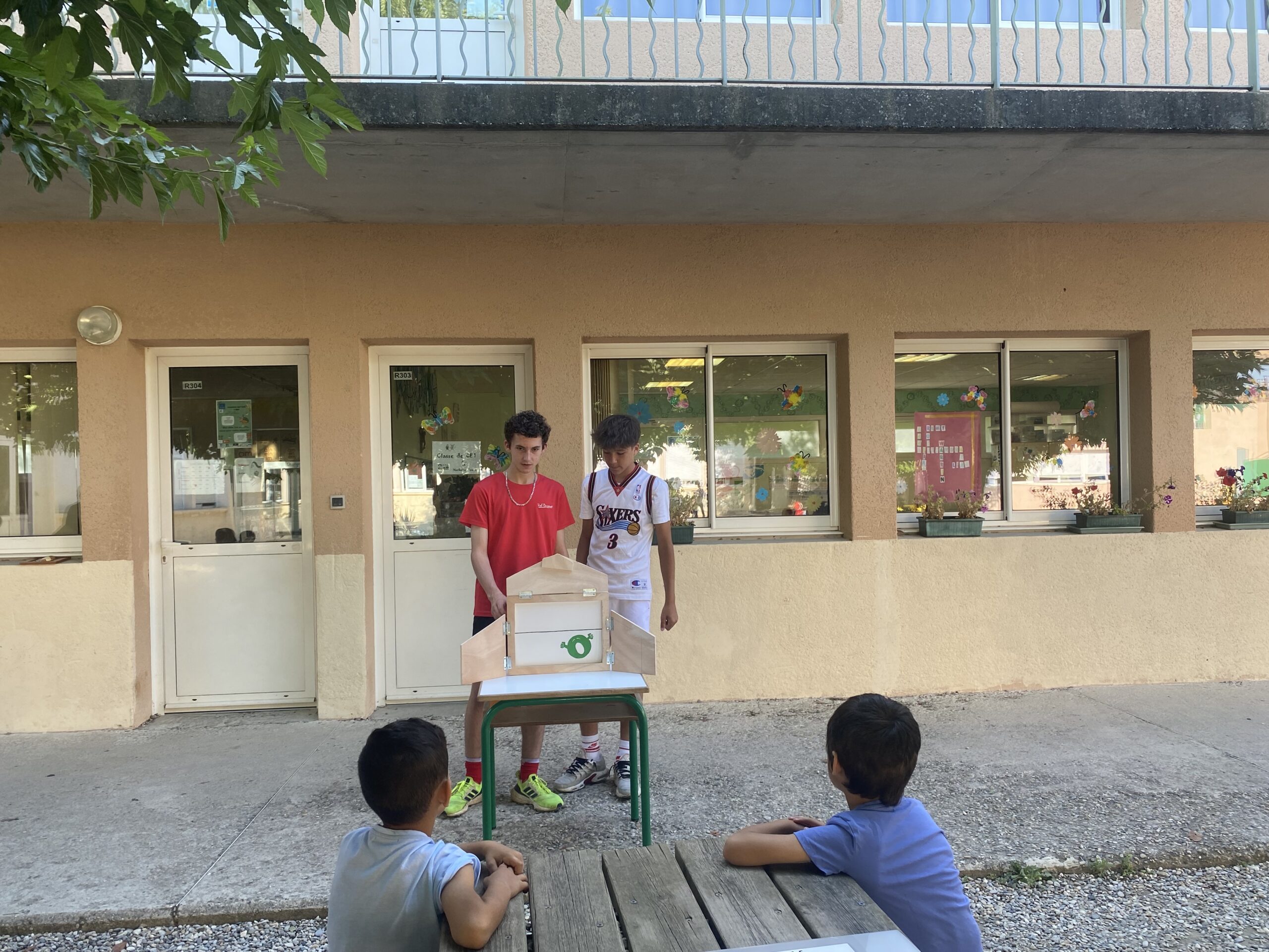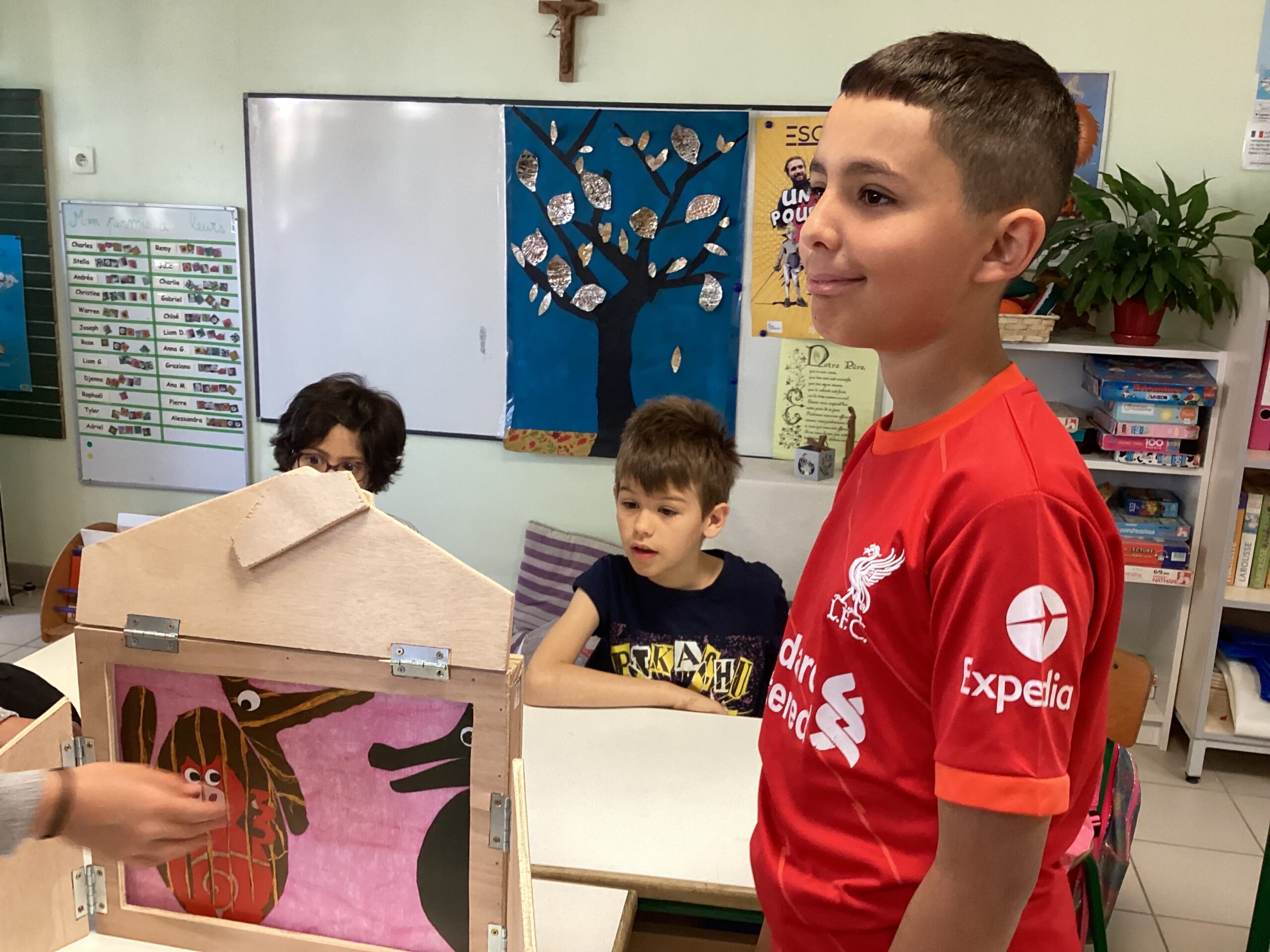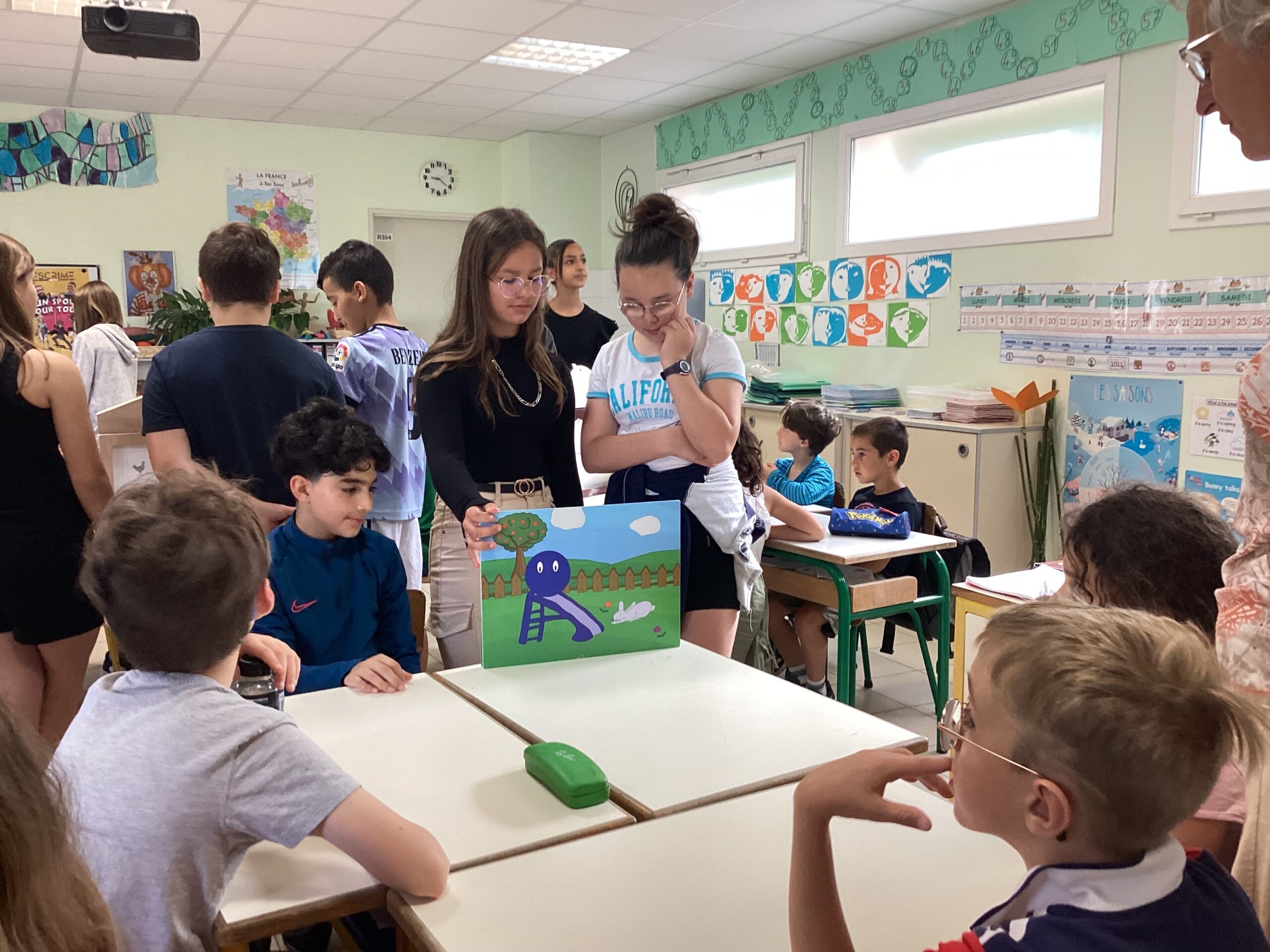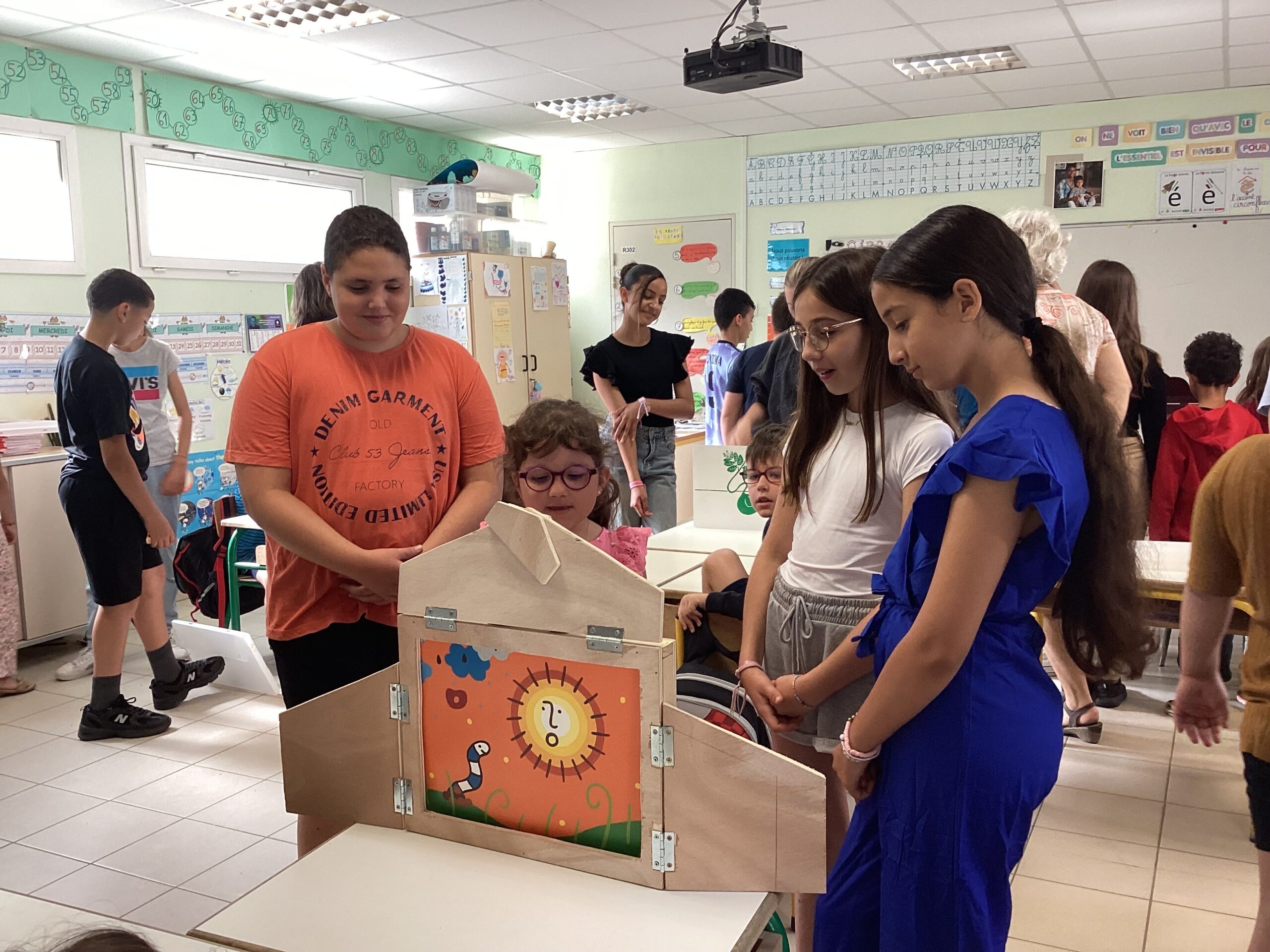 Ce mardi 18 juin 2024, ils ont donc livré un véritable spectacle aux élèves de CE1 de Saint Jean le Baptiste. Ils ont même commencé à leur apprendre les techniques du kamishibaï en leur proposant de lire à leur tour.