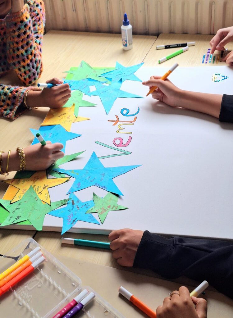 En 2nde Vente nous avons réalisés des toiles collaboratives le matin, et l'après-midi nous avons rejoint les première et terminale vente pour faire des olympiades filière vente.