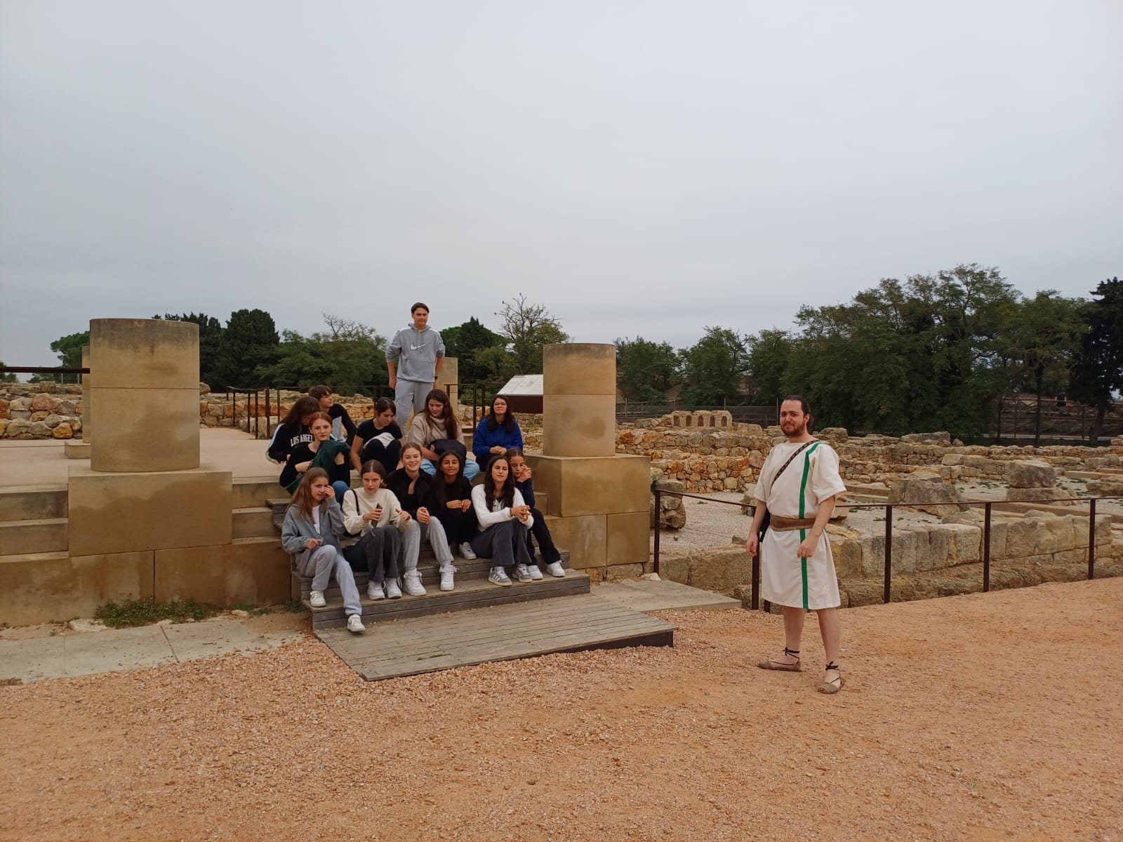 Après un départ de bonne heure ce lundi 14 octobre 2024, nous sommes arrivés aux ruines d'Empuries où notre guide romain nous a fait découvrir les anciennes villes grecques et romaines à travers le récit d'anecdotes, le tout en espagnol bien sûr ! Ensuite pique nique en bord de mer puis découverte à pied du village L'Escala. Puis nous avons repris les minibus direction Piera pour rejoindre notre logement. Après la découverte du lieu, nous sommes partis au supermarché faire les courses en suivant la liste établie en classe, en espagnol toujours ! Repas et dodo bien mérité !