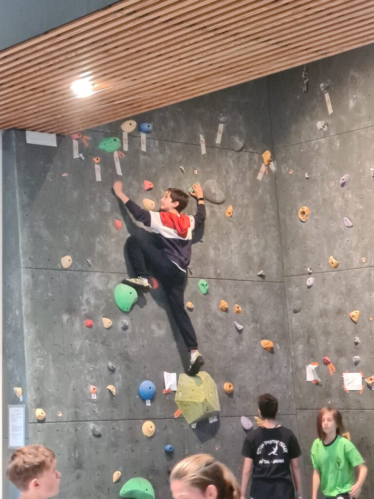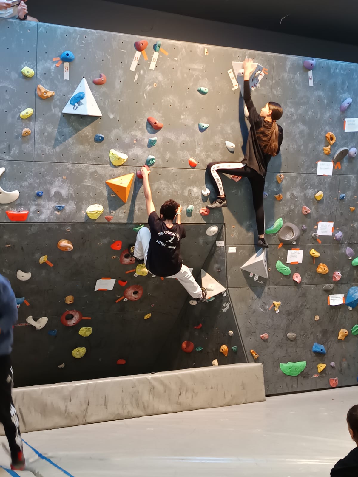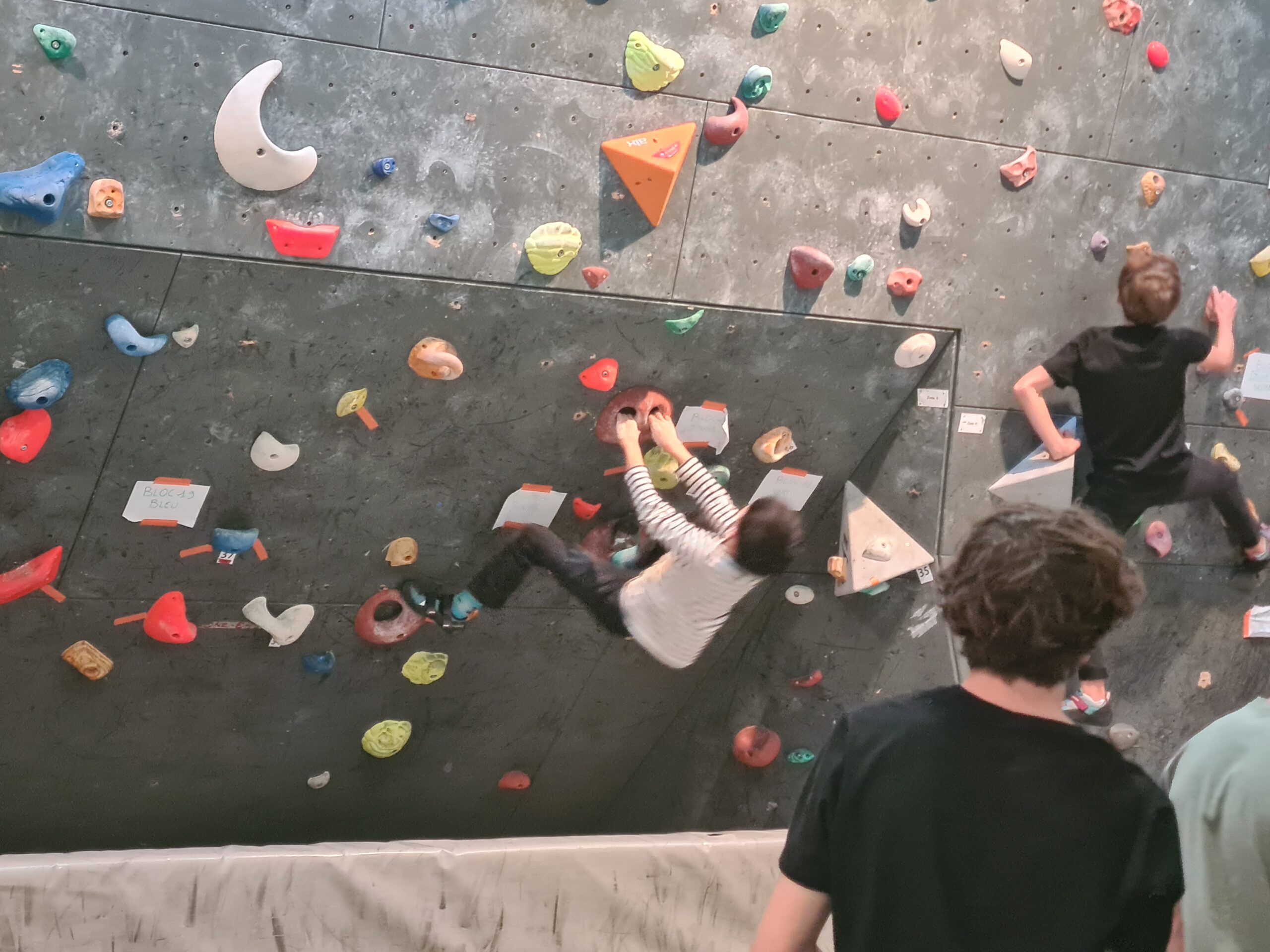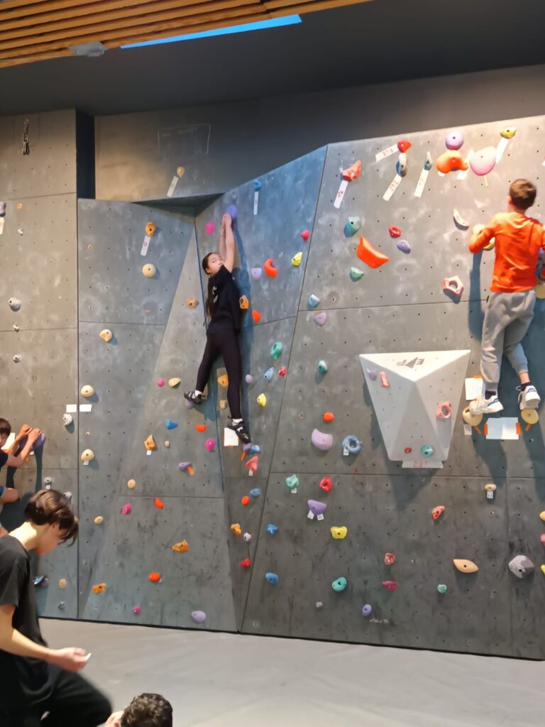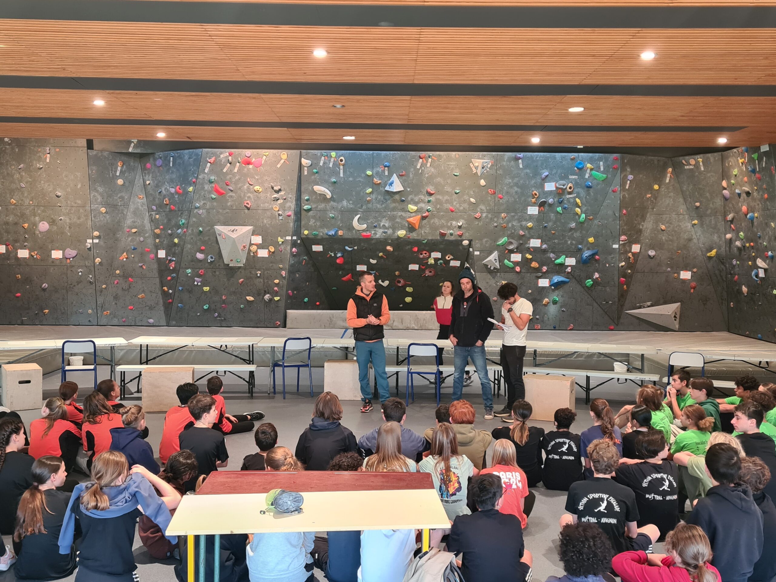 Ce mercredi 11 décembre, les 7 "grimpeurs" de l'établissement (une grimpeuse manquait à l'appel!) sont allés jusqu'à Vedène, pour une CONTEST BLOC, accompagnés par leur professeur d'EPS, Mme Chuffart... Le contest bloc est un concours de bloc en escalade (mur bas, sans corde : l'objectif n'est pas d'aller haut mais de faire une voie difficile, de quelques prises seulement, qui fait souvent une trajectoire en traversée... Les photos seront plus parlante que cette explication , héhé 🙂 ). Une vingtaine de voies à faire, à tester, du niveau 4B au niveau 6C... Chaque voie valant au départ 1000points et perdant la moitié de sa valeur à chaque fois qu'un grimpeur la réussissait. un système qui permet à la fin de départager les élèves dans le concours et d'obtenir une 1ère, une 2eme et une 3ème place. SJLB s'est illustré ! 2 podiums ! Dans deux catégories ! Dan Bernard chez les minimum a bluffé tout le monde et a notamment réussi une voie à vue (c'est à dire qu'il ne l'avait jamais testé avant!) , en one shot (une seule tentative). Cela l'a amené sur la 1ère marche du podium chez les benjamins. Yan Bernard, son frère de 2ans de plus, catégorie minime a quant a lui obtenu la médaille d'argent après être arrivé en finale, très brillamment. Un grand bravo à tous les deux et à nos autres grimpeurs pour leurs belles perfs! Nous préparons bien les championnats départementaux qui auront lieux en mars !